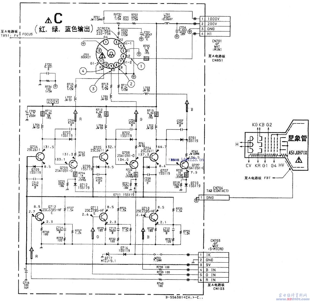 索尼KV-J21TF8电视场回扫线故障检修(图) 2013-07-19 23:01:10 阅读 360 次 评论 0 条 摘要: 接修一台索尼KV-J21TF8电视,屏幕全部是场回扫线,查电压全部正常,换了TDA8375A的IC还是一样。后查出是视放板D717,一个9.1V稳压二极管坏了。 附上原理图: 接修一台索尼KV-J21TF8电视,屏幕全部是场回扫线,查电压全部正常,换了TDA8375A的IC还是一样。 后查出是视放板D717,一个9.1V稳压二极管坏了。 附上原理图: 版权声明:本文为转载文章,版权归原作者所有,欢迎分享本文,转载请保留出处! 点赞 分享: PREVIOUS:TCL L43F3390A-3D液晶电视(MS801机芯)热机无图,像闪像暗 NEXT:TCL 2026A液晶电视原理和维修 文章导航