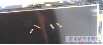 一台47寸LG液晶电视,出现上部四分之一有正常图像。下部无图,有黑白的竖条。该故障确定是屏故障,下面对屏进行维修。