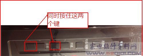 如上图,同时按住音量加和节目减键,插上电源,再按电源键,指示灯变绿色,光栅出现再松手。这时候不再关机,这个时候你不要以为故障排除了,只要一关机再开又会保护。但至少可以确定是软件出了问题。这时我们可以试一下解除保护,首先进入维修模式。方法如下。
