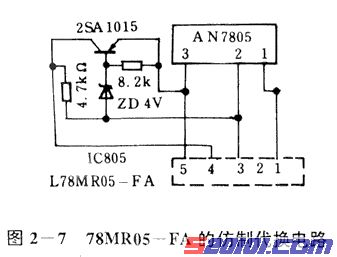 L78MR05 一 FA 为稳压复位二合一集成块,损坏后不易购买,可采用如图 2—7 所 示的电路代换。