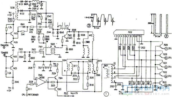 彩显行管过流损坏是经常遇到的问题总结了以下几点:行激励供电限流电阻、行管基射极电阻、行管放大倍数这三者是一个闭环的关系,有的资料上介绍不同的行管对应着不同的电流就是由行管本身的放大倍数决定的,换用行管的放大倍数必须与损坏的行管相同,否则行管工作电流要发生变化,因行管损坏已经无法测其放大倍数(无阻尼),更换行管后,最好在行供电回路串电流表,测其工作电流,可试着调试行激励级限流电阻和行管基射极电阻,使其工作电流最小,有条件的话最好用示波器测试行管基射极波形让其VPP值为1.8V~2.2V,该值过小为欠激励,过大为过激励,否则行管则会因电流过大,损耗增加而再次损坏。