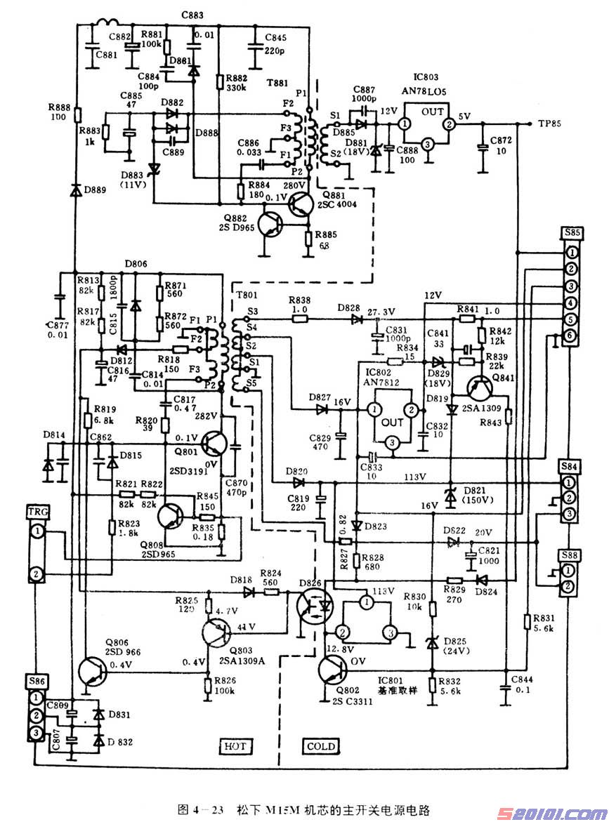 松下M15M机芯的主开关电源电路见图4—23所示。