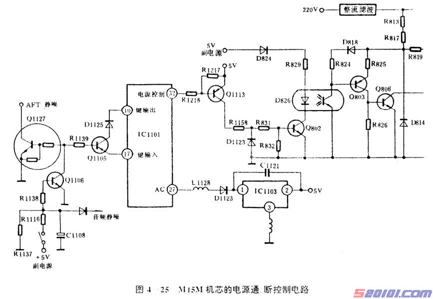 松下M15M机芯的电源通/断控制电路见图4—25所示。