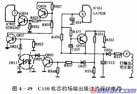 C150机芯的场输出级过流保护电路见图4一49所示。