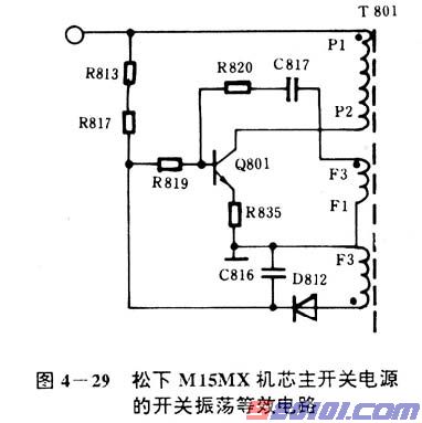 该电路主要由STR11006厚膜集成电路内部开关管Q1、开关变压器T881的P1~P2绕组、正反馈绕组F1~F3、反馈电容和电阻等组成,见图4—30所示。