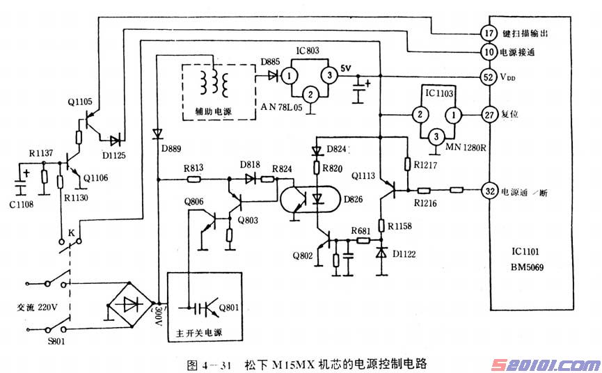 松下M15MX机芯的电源控制电路见图4—31所示。