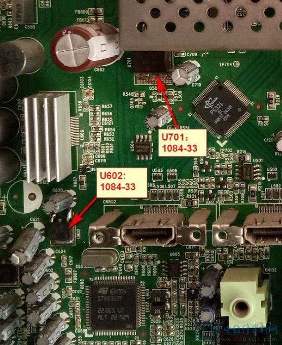三洋LCD-32CC10液晶电视开机一段时间后花屏且死机 2019-05-13 04:42:22 阅读 502 次 评论 0 条 摘要: 本人接修用户送来的三洋液晶电视,故障表现为开机3 - 5分钟后花屏时图像呈竖条纹,而且关不了机;关机后又开不了机,红灯会变蓝灯,但黑屏无显。根据经验初步判故障应该在主板。 拆机机器后盖进 本人接修用户送来的三洋液晶电视,故障表现为开机3 - 5分钟后花屏时图像呈竖条纹,而且关不了机;关机后又开不了机,红灯会变蓝灯,但黑屏无显。根据经验初步判故障应该在主板。 拆机机器后盖进行检查,在主板上查故障时发现U701 1084-33输出电压为1.6V,刚开机时为3.9V,明显不对,而元器件编号为U602 1084-33始终为3.6V ,也有偏差,两个一并换掉,再测电压稳定,机器修复。 版权声明:本文为转载文章,版权归原作者所有,欢迎分享本文,转载请保留出处! 点赞 分享: PREVIOUS:TCL 32P21BD液晶电视开机通信号后立马关机 NEXT:创维42E380液晶电视屏换背光灯(图) 文章导航