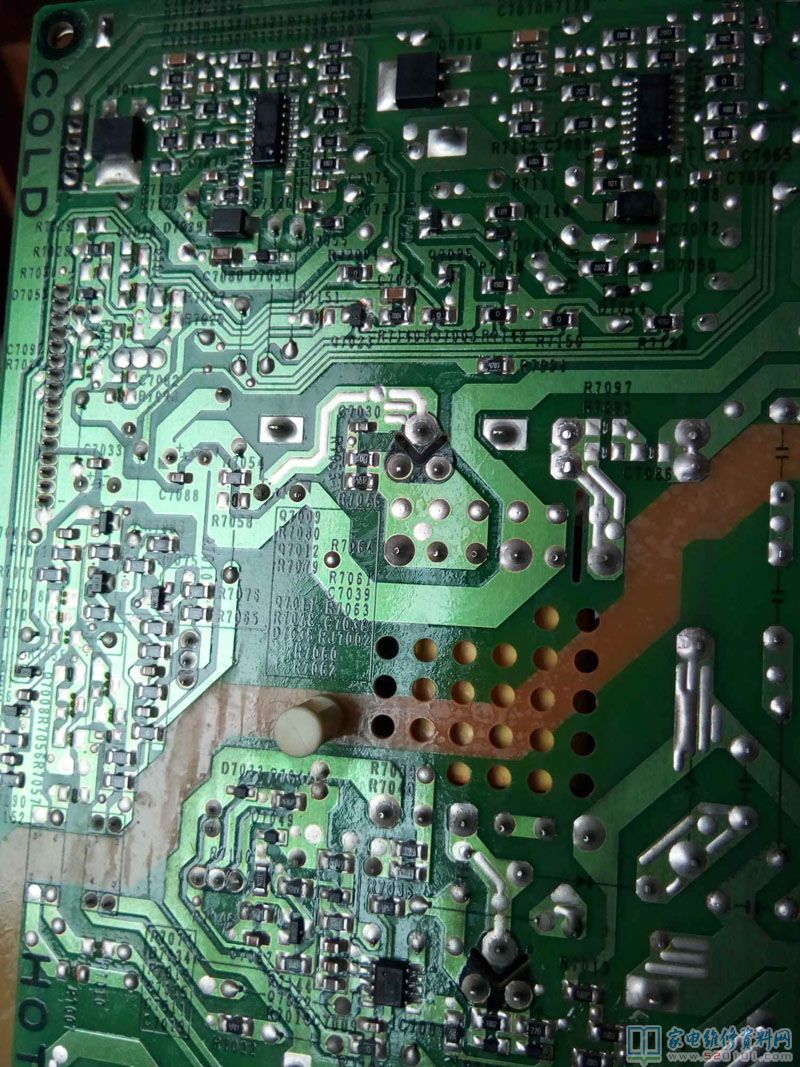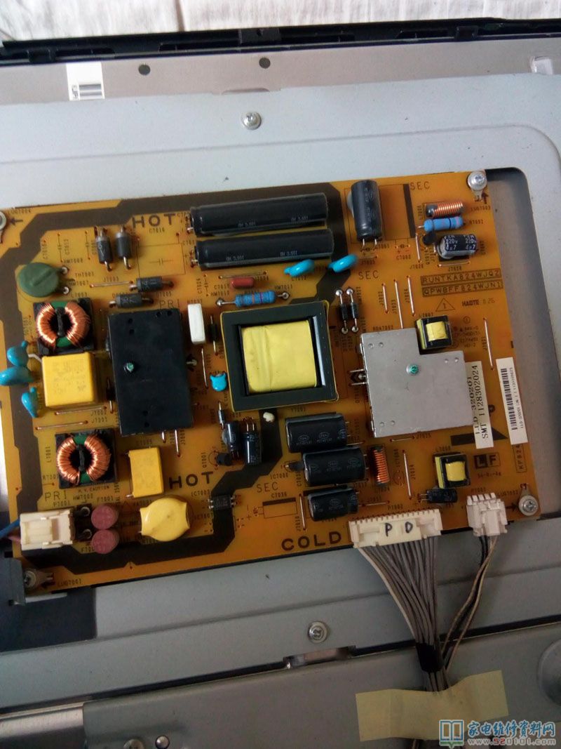 接修一台夏普LCD-NX430液晶电视,故障开机1分钟黑屏,指示灯红灯一闪一闪的,再开还是一直闪,最后指示灯熄灭,印象中好像是通病,按照操作方法同时按住电视机面板上av/tv键和音量减,直至画面有个k字下面还有其他不表说了,再同时按住音量减和节目减,画面出现一大串英文内容,这个时候会英文就知道什么意思了,开个玩笑,用方向键调项目,再用频道减改参数,其他都不要改,只改一项 l error 5 把它改为0 然后断电后重新上电开机正常,试放1小时不出问题,现在的问题是这就算修好了吗,以后会不会还会再出现啊,求师傅们帮助解答一下,最后不放心还是拆机看一下吧,电路板上全是字母,数字,没一个中文标识,接线排端子上也是没有一个标识,有些芯片压根就没见过,但是板子做工不错。