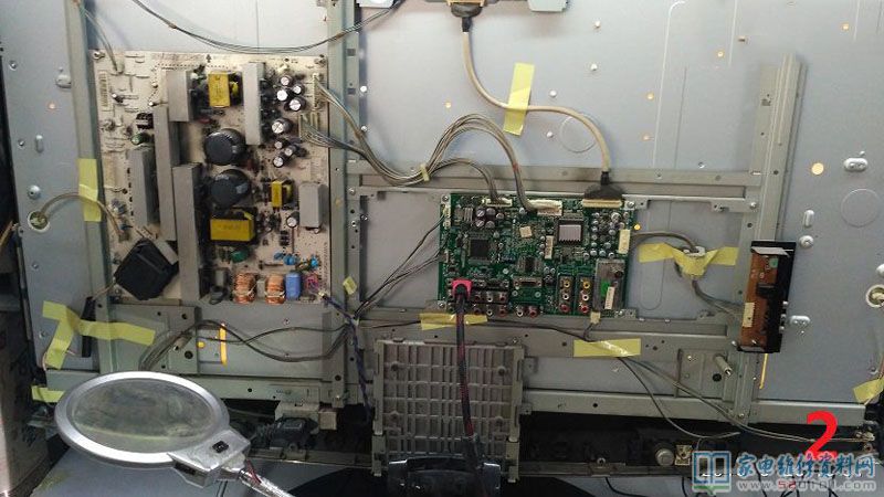 接修一台LG 42LB09R-TD 42寸液晶电视,故障表现为TV和AV都一切正常,但是切换HDMI1和HDMI2开机时没信号,经过十多分钟机器热机了之后,就会有闪烁的图像出现,然后慢慢的图像正常,但伴音一直都没有。