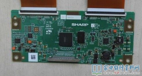 接修一台夏普LCD-40G100A液晶电视,故障表现开机右边图像正常,左边大面积反应慢、失真,并且有一根横向的半白线。根据维修经验,分解屏后,直接撕掉左边四个COF模块,并用酒精清洁干净。开机一切正常,此故障实属夏普屏通病。