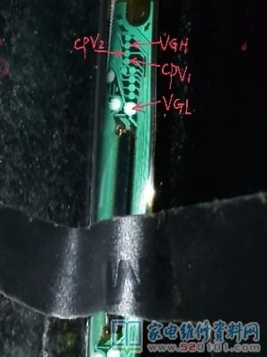 液晶电视,故障表现是左边画面比右边暗且反应慢,开屏准备撕左耳朵,但一看此COF点位还算简洁明了,屏是三星屏,但Y轴是夏普的模组。决定由撕改为飞线。