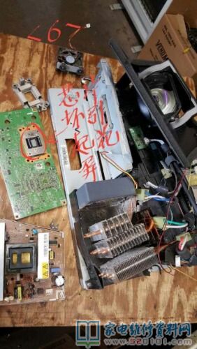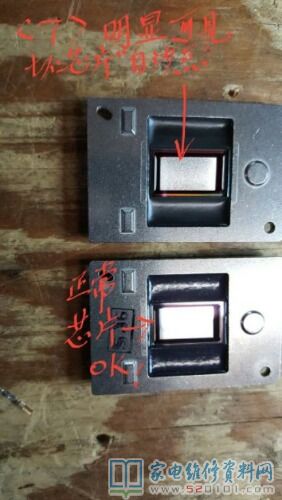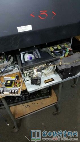 判断:此类“花屏”故障100%为主板“芯片”(光显)所为,也是此类《DLP》电视机“通病”。