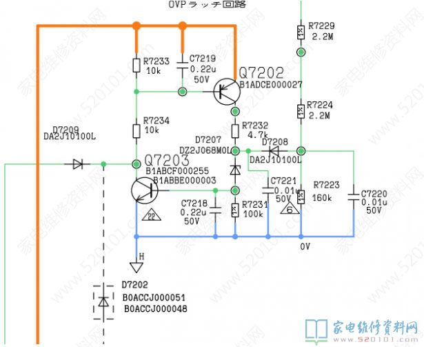 不费吹灰之力,果然是该机型的常有故障,都说拆除Q7203,去除保护。试验后发现PFC有了,电压406V(偏高),pfc电感发出吱吱声。难道就这样吗?好明显没找到问题根源,不放心,更换Q7202、Q7203故障依旧。分析Q7202、Q7203构成可控硅形式,由D7208、D7209两路触发控制IC7201第八脚电压,使PFC形成保护。