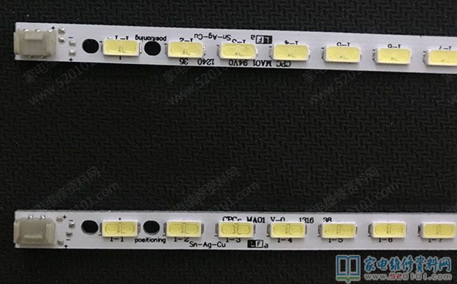 我只得拿回家里拆修,经查左边灯条由于发热使插座脱落,购买了同型号灯条装上后先单独用电源板测试灯条,方法是:将供应主板的插座上14、15、17、19、21、23、24脚短路,(14为POWER ON;15为5V供电;17、23为调光脉冲控制;19为调光24为侍机)灯条点亮且亮度均匀,高压输出85V,其他电压12V、5V、3.3V均正常,于是装屏幕加固外边铁框,完成后,信心满满地开机。