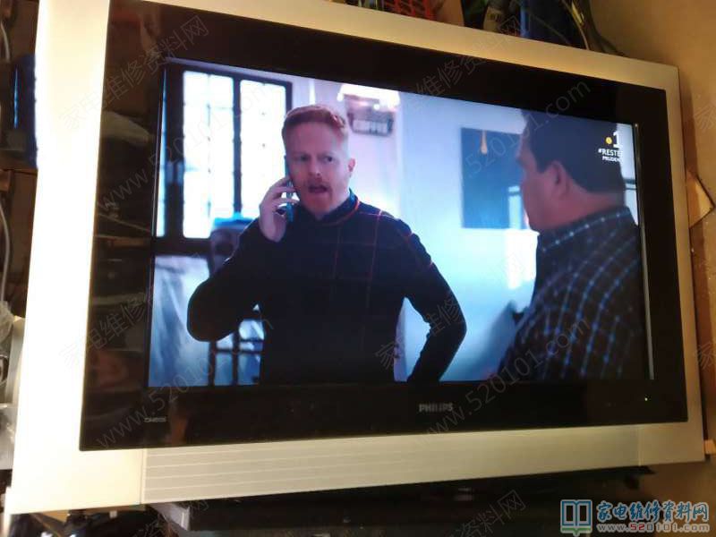 接修一台古董级液晶电视,飞利浦42PF9831D/01,此机故障是开机屏幕一亮即灭,其他正常,判断问题出现在高压保护相关电路。根据以往经验,解除保护即可修复,具体方法请参考我以前写的文章《谈一谈LCD液晶电视和显示器的去保护(适用于绝大部分CCFL)》