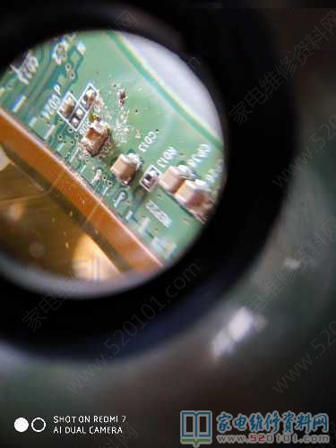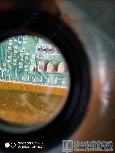最近维修一台夏普LCD-45TX4100A液晶电视,故障表现为黑屏,但背光亮且有声音,开盖检查主板供给边板的12V也正常,测量VGH电压0V,外网上百度说是边板和屏一体的,屏坏的多,但是自己还是不死心,因为以前也碰到过边板跟屏是一体的就是不是一种品牌的,就就用电阻20K档测量边板的电阻,有好几个电阻阻值0欧,先把右边的排线断开右边的阻值正常了,就在左边的电容拆下来第三个就正常了,位号C032,随后把另外的两个焊上去,在旧板上拆了一个跟原来个头大小差不多大的电容装上开机一切正常了,图像出现了。