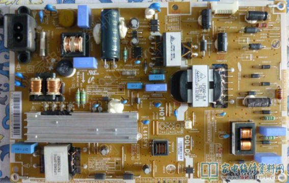 三星BN44-00610B是用在三星UE46F5000AW液晶电视上的一款经典电源板,其设计合理、布局明晰,没有太多冗余的电路,非常便于维修。电源板损坏后,电视通常表现为有开机电源指示灯且可控但开机后无光无声。