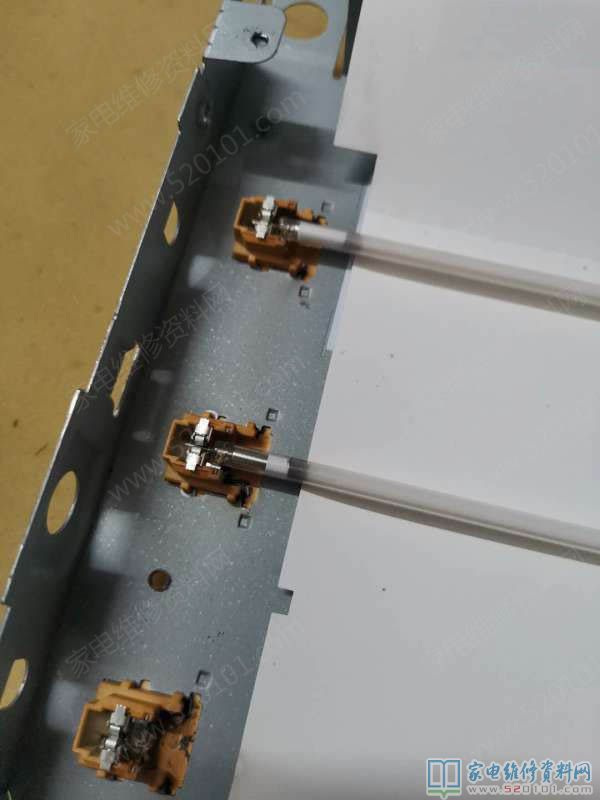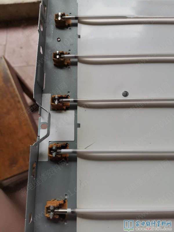 索尼KLV-32BX350液晶电视黑屏的故障维修 2021-09-14 18:41:25 阅读 650 次 评论 0 条 摘要: 接修一台索尼KLV-32BX350液晶电视,故障表现为开机显示SONY字样后黑屏并转待机状态,初步分析能显示商标SONY说明高压电路基本正常,应该是灯管老化引起保护。开盖拆屏,看见灯条插脚全部有打火烧黑,拆 接修一台索尼KLV-32BX350液晶电视,故障表现为开机显示SONY字样后黑屏并转待机状态,初步分析能显示商标SONY说明高压电路基本正常,应该是灯管老化引起保护。开盖拆屏,看见灯条插脚全部有打火烧黑,拆下灯条,用小刀酒精清理干净用电吹风吹干,装回灯条,原打火位置用704胶密封好用,待胶干后装屏,试机恢复正常。 版权声明:本文为转载文章,版权归原作者所有,欢迎分享本文,转载请保留出处! 点赞 分享: PREVIOUS:海信LED49EC270W液晶电视指示蓝灯亮但不开机的维修 NEXT:索尼KDL-32W600A液晶电视红灯闪四次不开机的维修 文章导航