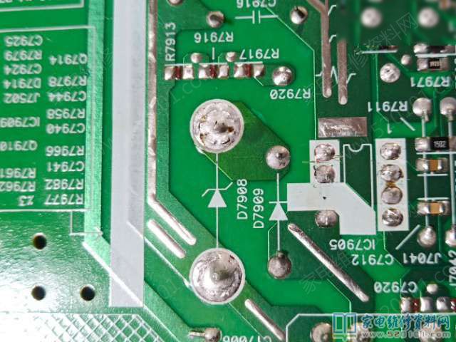 夏普LCD-46E66A液晶电视不通电且指示红灯不亮 2021-10-28 18:22:12 阅读 760 次 评论 0 条 摘要: 接修一台夏普LCD-46E66A液晶电视,故障表现为不通电,红灯不亮,拆机直奔电源板,电源板型号是DPS-294BP,测量各个地方都无电压,测量c7915两端电压为3-5V跳动,不正常,正常应该是12-13 接修一台夏普LCD-46E66A液晶电视,故障表现为不通电,红灯不亮,拆机直奔电源板,电源板型号是DPS-294BP,测量各个地方都无电压,测量c7915两端电压为3-5V跳动,不正常,正常应该是12-13V,换TNY264PN故障不变,后来发现D7908击穿 型号1N5383稳压管150V的,网购一个稳压管,3天后收到货换上,故障排除。 版权声明:本文为转载文章,版权归原作者所有,欢迎分享本文,转载请保留出处! 点赞 分享: PREVIOUS:TCL L42E5300D液晶电视液晶电视背光亮但无图像 NEXT:夏普LCD-46GE50A液晶电视开机后反复重启的故障维修 文章导航