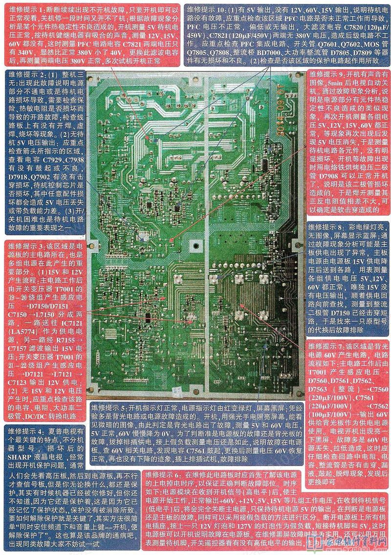 夏普液晶电视机采用了DPS-304BP-2、DPS-304BP型、DPS-304BP-1型等三个型号,电源板外观看来大同小异,代换时 —定要看清型号,本文着重介绍DPS-304BP-2;广泛应用于LCD-46A63、LCDT6F63、LCD-46Gx3、46U64、42Gx3等大屏系列机芯中。输出功率达250W,输出功耗为8A,所以易出故障。