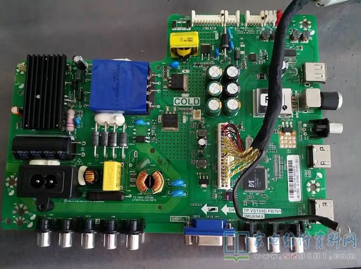 一台东芝32L1550C型液晶彩电,开机后黑屏,伴音正常。上电试机,发现背光不亮,怀疑恒流电路或背光源有故障。该机采用三合一主板,型号是TP.VST69D.PB701( 3ML69AX)。重新上电开机,测量LED灯条供电电压,发现在开机时升到50V,几秒钟后迅速下降,这说明恒流电路基本正常,LED灯条异常导致恒流电路进入保护状态。用LED灯条测试仪检测灯条,测试仪上电压显示为“300V",说明LED灯条开路。小心翼翼地拆开液晶屏,发现屏内有两根串联的灯条,每根灯条上有10颗灯珠。经查,一根灯条开路,另一根正常。用灯条测试仪测试好的那一根,显示的电压为30V,说明每颗灯珠的工作电压是3V ,恒流板的输出电压约为60V。因笔者手头没有相同型号的灯条,决定用3根7只3V灯珠串联的灯条代替。将这3根灯条串联,并仔细调整3根灯条的安装位置,使其均匀分布后装机试验,故障排除。