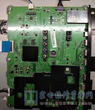 接修一台三星UA48HU6000J液晶电视,故障现象为插电后红色的指示灯常亮,按键没有反应,无背光,黑屏。拆开外壳,脱开主板和电源板的联线背光灯可以点亮,测电源板各部分电压基本正常(万用表档次比较低,只能看个大概)。连接主板和电源之间的联线,测主板上电压:上电瞬间,PSON引角有低电平反应,再测几个关键点电压,基本正常,唯独缺少一组给CPU供电的1.2V。找到这个关键点就开始了漫长的检查。