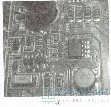 检测发现,U4(AP1534SG)没有输出3V3电压。U4的①脚是输出电压取样反馈端正常电压为0.8V;②脚是EN使能端,高电平芯片工作,本机通过R22接5V (如图2所示),即上电就工作;③脚是oCSET ,设置最大输出电流;④脚接输入电压,正常工作电压范围为4.4V~18V;⑤、⑥脚输出,⑦、⑧脚接地。测⑤、⑥脚对地没有短路,上电测④脚电压为5.1V,②脚有3.3V 电压,这说明该芯片已经具备工作条件,可判断U4有问题,如图3所示。