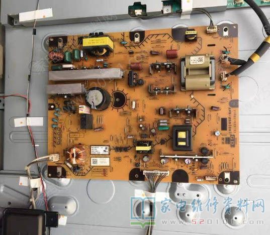 索尼KLV-46EX600液晶电视或索尼KLV-46EX400液晶电视,开机屏闪一下后熄灭,指示灯闪6次,此故障是灯条 配合电源一体板上PS6800 0.5A坏。