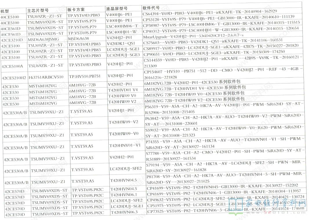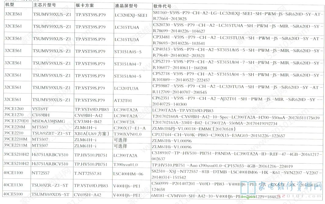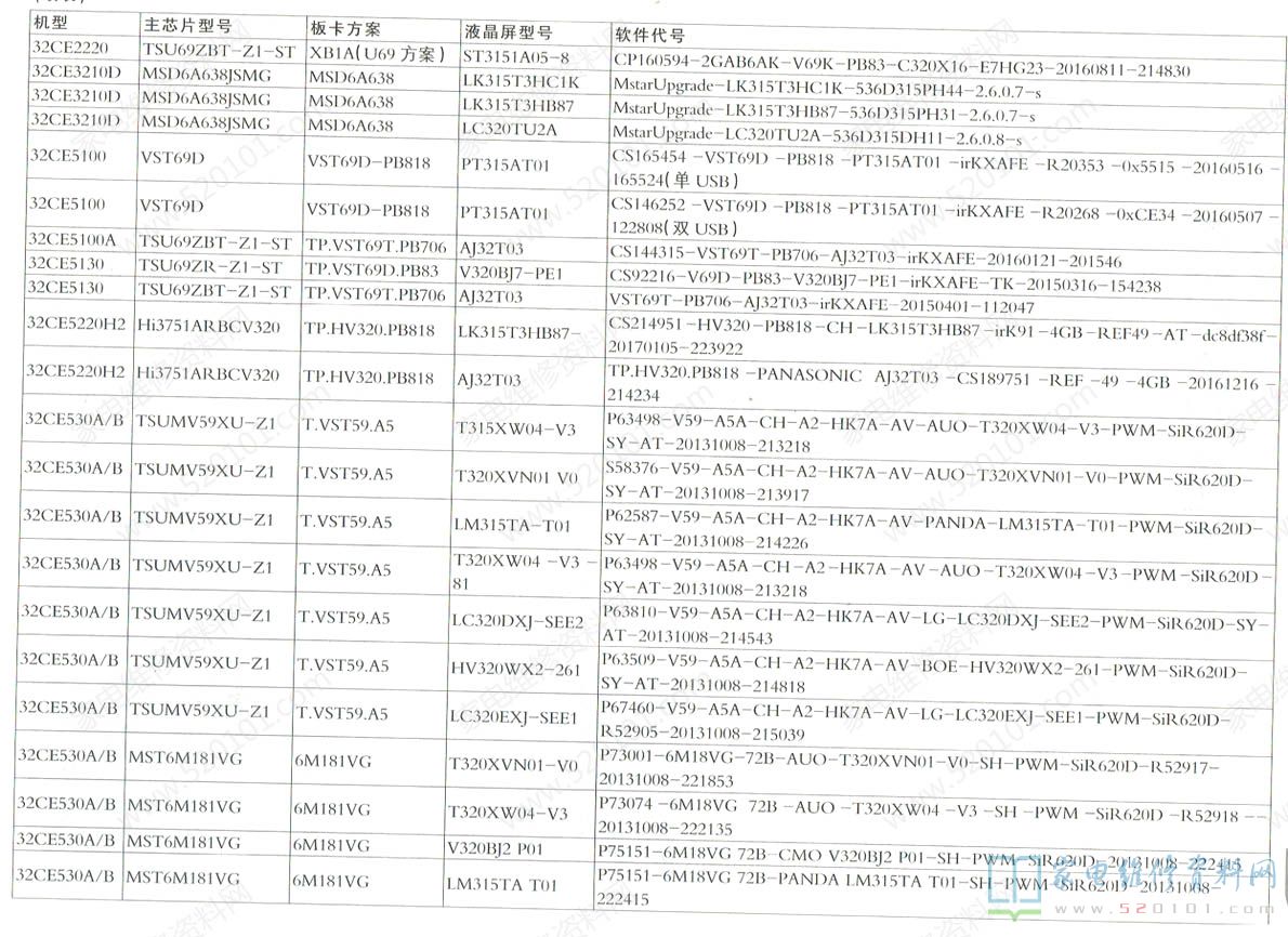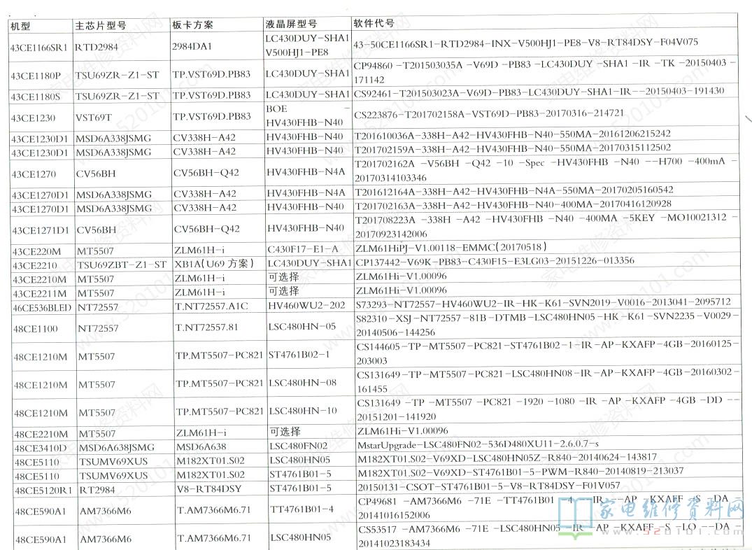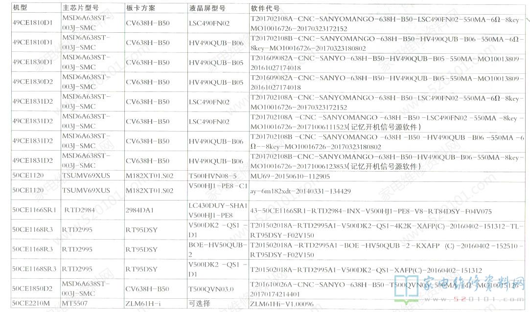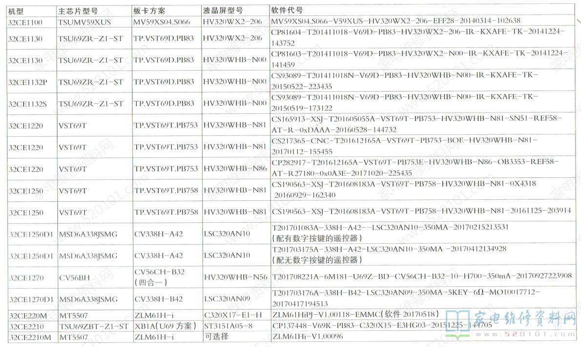 三洋液晶电视机型配置与软件代号对照一览表 2022-05-17 19:32:55 阅读 1552 次 评论 0 条 摘要: 下表是SANYO三洋液晶电视的机型、主芯片型号、板卡方案、液晶屏型号、软件代号等信息对照一览表。 下表是SANYO三洋液晶电视的机型、主芯片型号、板卡方案、液晶屏型号、软件代号等信息对照一览表。 版权声明:本文为转载文章,版权归原作者所有,欢迎分享本文,转载请保留出处! 点赞 分享: PREVIOUS:海信LED43N2600液晶电视待机时有滋滋叫的异常 NEXT:Letv乐视X60液晶电视维修参考资料 文章导航