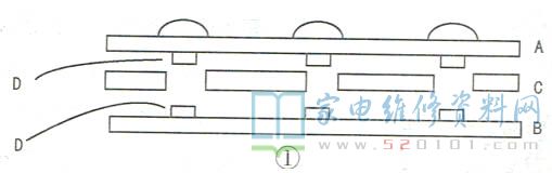 这样处理后,触点D之间不再粘连,遥控失灵故障排除,但是自动进入商店演示模式的现象仍时有出现。该机的塑料薄膜开关通过碳膜及插座与主板相连,如图3所示。