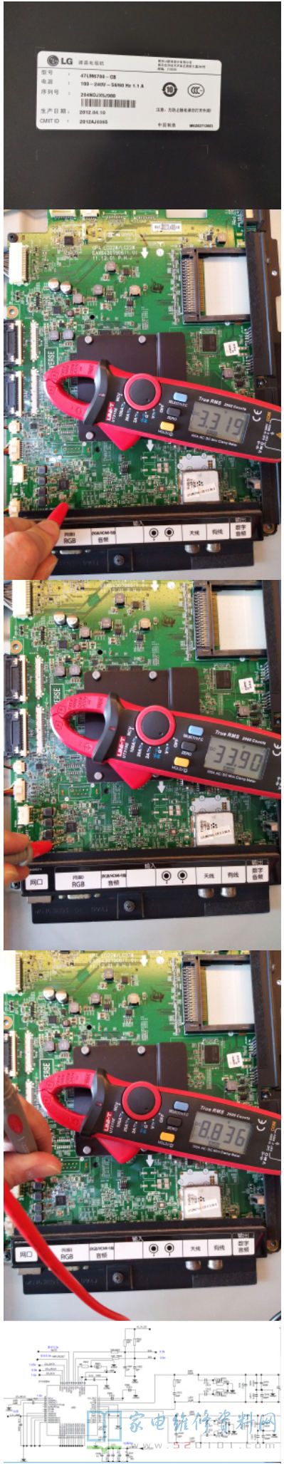 接修一台LG 47LM6700-CB液晶电视,故障表现是图像正常,所有通道输入都无伴音,拆机检查,发现此机的音频部分使用的是STA381BW,查资料此芯片为数字音频处理芯片,负责把主芯片送过来的串行数字音频信号进行处理,并进行前置及功率放大后推动扬声器发声。首先检查扬声器,用万用表的R*1挡测量扬声器有“咔咔”的声音,说明扬声器是正常的,再查扬声器到主板的连接也正常。电视机通电,测量STA380BW功放输出端的4个电感的对地电压,一组为8.8伏,另一组为0伏,不正常,进一步检查芯片的工作条件,28脚的3.3伏正常,而5脚和8脚的电压为34伏,比电路图标注的24伏明显偏高,查43脚,44脚的总线电压,41脚的静噪控制电压,40脚的复位电压未见异常,在输入机顶盒电视信号的情况下,用示波器观察36、37、38、39等引脚从主芯片输送过来的数字音频信号,时钟信号都正常,判断是供电电压过高损坏了音频IC。