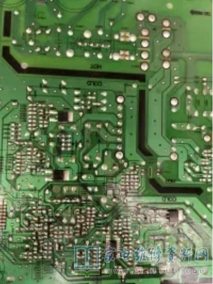 拔掉主板电源,背光不亮,开机电压3.3V正常,无主要电压,由此判断,应该是电源出问题了。单独修理电源,从P-ON入手,开机电压经RM825,RM826,CM813分压到QM805的G脚,发现问题G脚电压极低,D脚电压5V,“截止”!测量825,826电阻正常,应该是CM813漏电,更换后正常。