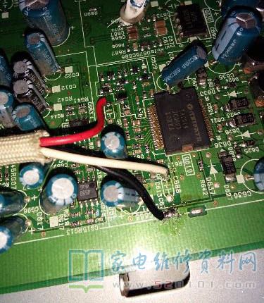 接修一台东芝42WL66C液晶电视,这台电视同行拿过来的。故障现象是插电开机背光亮显示也正常,五秒左右自动关机保护了。再按开机键还是一样五秒保护。网上查了一下是数码板BGA芯片有虚焊造成。然后买板数码板,接着买TV板,电源板换了还是同一问题,背光板单独能点亮应该没问题,测各线路供电电压都正常,重点来了:断开功放供电12V电压开机不保护了。买了三块拆机TV板都是同一问题?也许是这个电视的通病。不管他了决定改一下。外加一个功放板,原机的功放直接不要了。