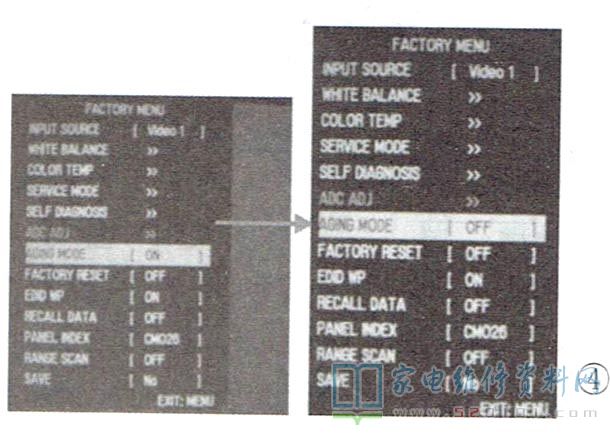 AGING MODE (老化模式),如果设置不是“OFF" ,则设置为“OFF"即可,如图4所示。