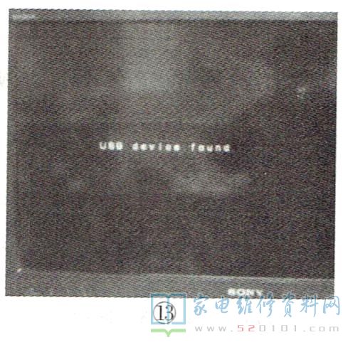 再拔掉电源线,插入U盘。按住机身右侧除电源键之外的任何一个按键,同时插上电源线机器自动开机。当屏幕出现如图13所示的升级提示字符时,则松开按键,机器进入升级状态。如出现无法识别该U盘、U盘中存放的数据文件路径错误、数据文件名称不对等异常情况,机器则迅速出现一连串的提示信息,最后显示"Binary file detecting ail",并迅速进入待机状态。整个升级过程中,橙色指示灯和绿色指示灯同时亮,升级时电视屏幕出现升级各阶段的提示文字和进度条,代表升级进展,如图14所示,图中最后的提示说明数据读写结束,升级完成。最后,拔掉电源线、取出U盘,再插入电源线开机,进入用户菜单,确认软件版本已更新。