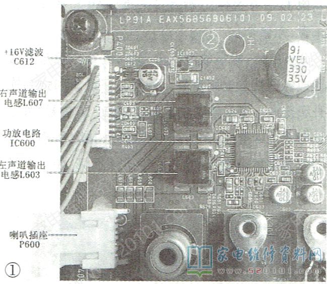 接修一台LG 42LH30FR-CA液晶彩电,有时收看几个小时甚至一天都正常,有时收看中突然无声。用DVD.USB、有线电视多种信号源试验,故障依旧。分析检修:根据故障现象分析,判断故障在伴音功放电路中。该机功放块型号是NTP-3100L(IC600),实物如图1所示。