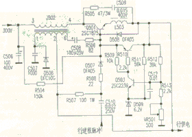 引起+B电压不稳,其原因在开关电源部分或行输出部分。因该机采用与行频同步的串联型开关电源,且仅有110V一组输出(见附图),用假负载法有其局限性,于是采用市场易购的SY-0125型彩电维修开关电源(只取110V)代换试机,开机光栅满幅,无胀缩现象,可见故障元件就在开关电源部分。