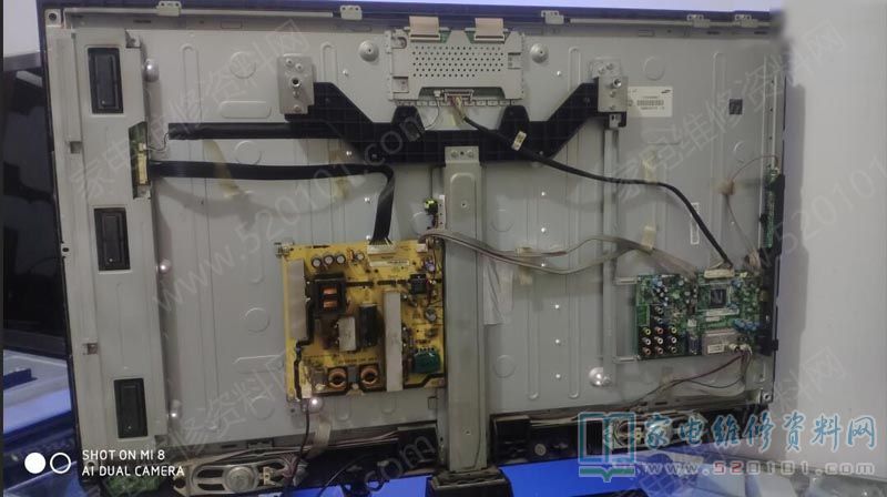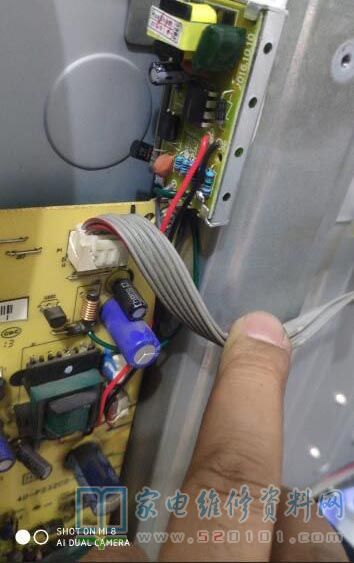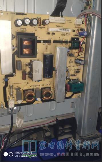 接修一台东芝40E100C液晶电视,客户说是去年还是前年雷击的,拆机经检查副电源3.3vs无输出,顺藤摸瓜查出初级U201损坏,型号viper17损坏,由于副电源不工作,其它各路电压也都无输出了,手头没有相同型号的,用电磁炉电源模块接上(用的这种电源是有变压器隔离的,也就是跟普通4-5线的电视电源模块差不多,电磁炉和卫星接收机都可以使用),设置电压为3.3V,再检查其它地方无明显损坏,通电开机3.3V输出正常,再遥控开机其它各路电压输出也正常,屏幕出现蓝背景,接机顶盒出现正常图像,修复完毕。