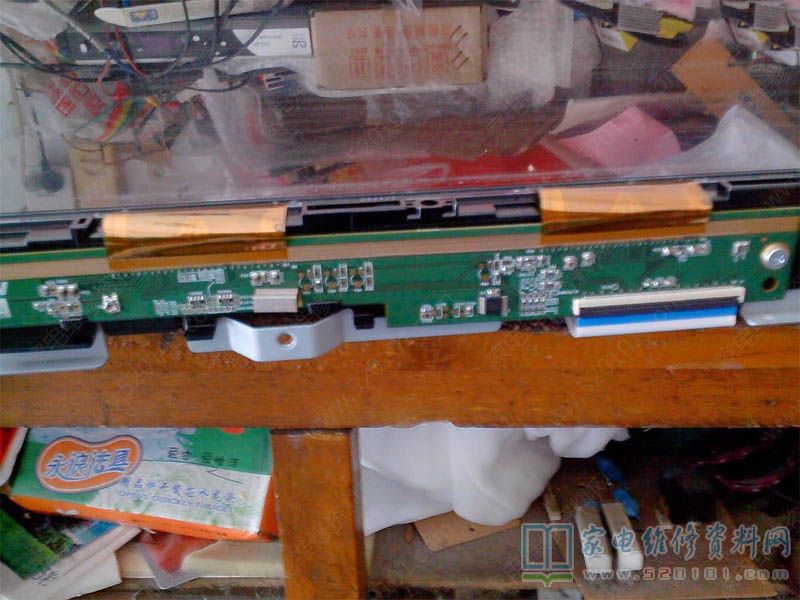 接修一台三星LA37B530P7R液晶电视,故障表现为白屏,能隐隐约约见到一点图像,呈负像,原以为伽玛芯片不良,拆机检查T370HW02友达屏,逻辑板上芯片AS15-HF手摸温感正常,但还是代换它,故障仍然不变,那就要往后级查,以前记得这屏边板上有两只AS34,它不良或者屏不良了,和客户沟通好,讲好修屏风险责任,达成共识,拆开屏边铁框,接电试机左边板上,AS34-G芯片马上烫手,更换后再试一切正常。