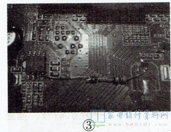 另外,本机主板和逻辑板之间有通信线,上电后逻辑板上蓝灯亮,随后熄灭,这时候背光才亮。若拔下上屏线,或逻辑板工作不正常时,主板不会发出背光ON信号,则表现为无光、有声。在检修本机时,曾拔去上屏线让机器在无光、有声状态下工作,故障还是会出现,所以可以排除逻辑板有问题的可能。此机故障虽然排除,但故障原因并不清楚,估计是u20的④脚内部上拉电阻开路,引起④脚处于高阻抗状态,线路板轻微漏电或外界高频干扰,引起④脚状态变化,从而出现故障。