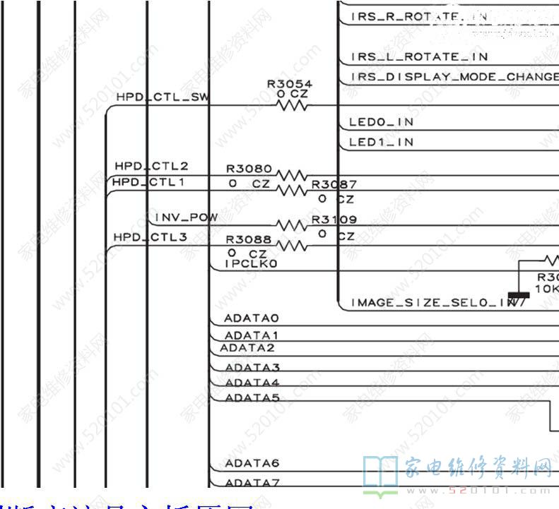 首先使用强制点背光法:从CN7502A脱开ERR引线,AC通电,2S后接地,还是黑屏,将ERR引线复位,脱开CN7502A的2脚(STB)引线,在CN7502A的2脚加上一个3V启动电压,背光亮,看到右上角有“输入1”,再测ERR为3.31V,看来黑屏是无背光启动电压造成的黑屏。