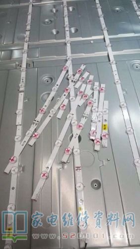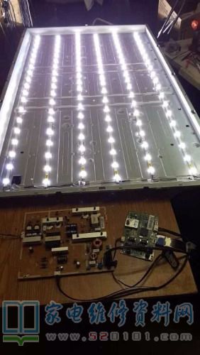 最近徒手单挑完美修复一台65英寸SAMSUNG LED背光,故障为上电没反应,后拆盖检查发现主板有发出开机信号(这里已排除主板故障),进一步测量电源恒流板去背光输出端(已开机状态)没背光信号输出,其他电压正常,按笔者维修经验考虑:(1)电源板恒流供电故障;(2)背光灯珠故障。按照自己思维首先锁定背光,结果,经点灯仪测量后背光各路没反应。到此就进行开屏修背光操作,经几小时艰难的奋战,背光终于完美修复了,下面与各位同行分享整个维修过程,如图所示。