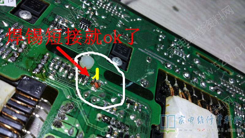 三星UA46C5000QR液晶电视继电器不停吸合的故障维修 2022-11-27 05:39:04 阅读 1119 次 评论 0 条 摘要: 关于三星UA46C5000QR液晶电视,开机后出现继电器吸合的声音,由于没有发现明显坏的地方,把电源板四个光耦不管好坏全部更换,然后看到下图中标记处没有元件按照我的方法焊接应该就可以了。 关于三星UA46C5000QR液晶电视,开机后出现继电器吸合的声音,由于没有发现明显坏的地方,把电源板四个光耦不管好坏全部更换,然后看到下图中标记处没有元件按照我的方法焊接应该就可以了。 版权声明:本文为转载文章,版权归原作者所有,欢迎分享本文,转载请保留出处! 点赞 分享: PREVIOUS:康佳LED55R6610U液晶电视U盘升级方法 NEXT:海信LED42EC260JD液晶电视开屏换灯条过程 文章导航