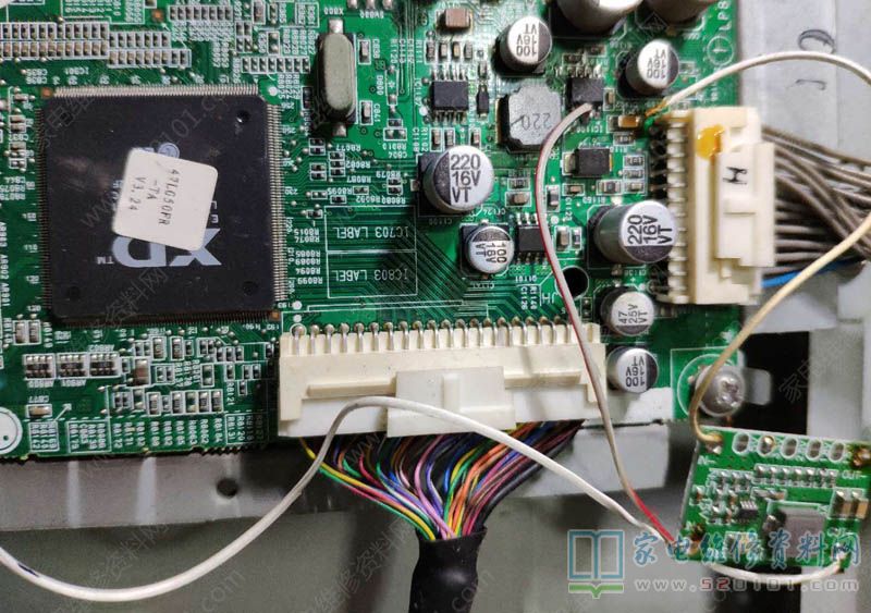 接修一台LG液晶电视,型号是47LG50FR-TA,故障表现为亮红灯不开机,检查按键开机键OK,电源只有5v待机电压,测试主板没有开机高电平控制电源,强制电源启动正常,怀疑主板损坏,由于按键开机无反应(修复后发现正常开机是,按开机键后红灯变暗后熄灭),所以怀疑存储器,该主板存储器在主板下面,结果测试发现存储器3.3V供电不到1v,顺路清理过去,发现他是IC1100一个叫SC42151STRT的电源小芯片供给,检查芯片外围元件正常,怀疑该芯片已坏,由于没有现成的,于是用网购的万能稳压模块改后电视机修复。