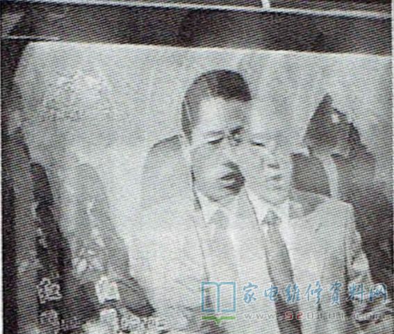 接修一台LCD-26CA5OS液晶彩电,使用有线模拟信号解码器(解扰器)后,图像上出现干扰条纹,如图1所示。