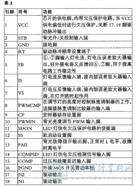 背光电路的芯片型号是LED背光驱动BD9211F。各脚名称及功能见表1。