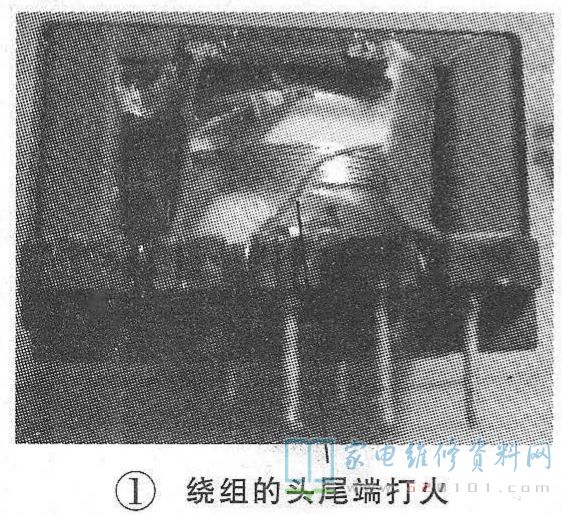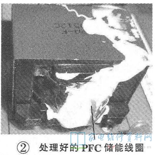 拆卸掉L601储能线圈变压器,剥开储能线圈的外层蓝色胶带,发现最外面-层线圈绕组的两引脚上端绝缘线已经烧煳变色(线圈的输入端和输出端绝缘铜线相连后打火),挑开相碰的绝缘铜线,使其绕组的头和尾相隔一定距离,然后填充绝缘硅胶,如图2所示。