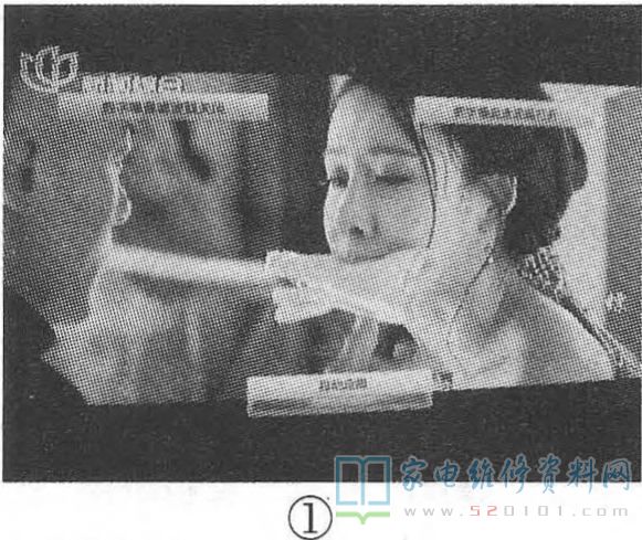 在AV状态下没有上述显示,但在左上角有LEDTV等功能显示彩条,把电视台台标全挡住了,如图2所示。