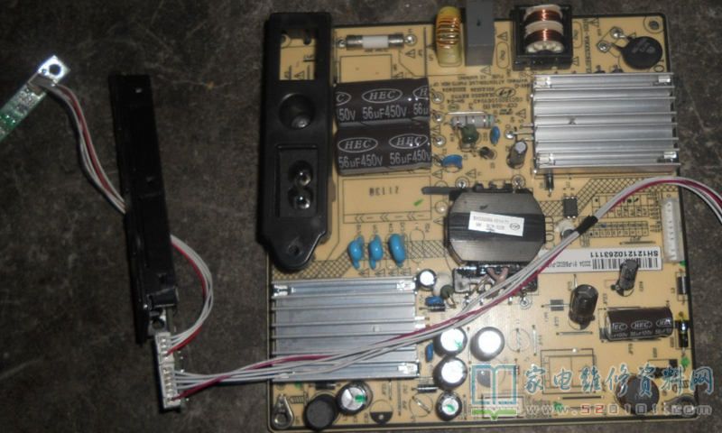 接修一台先锋LED-32B300型液晶彩电,故障表现为不开机,拆机检查整流的D9双极管,K、A极已短路,左半的二极管还好,用外形相同的100V/20A的肖特基双二极管代换,试机整机正常。