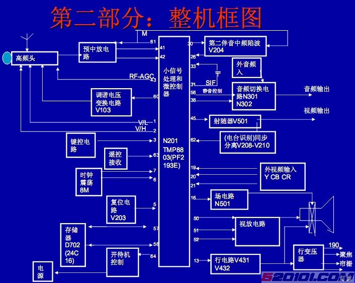 3.AV AV伴音是通过切换块 伴音是通过切换块4053 4053或 或TC90L01 TC90L01进行转换。总之根 进行转换。总之根